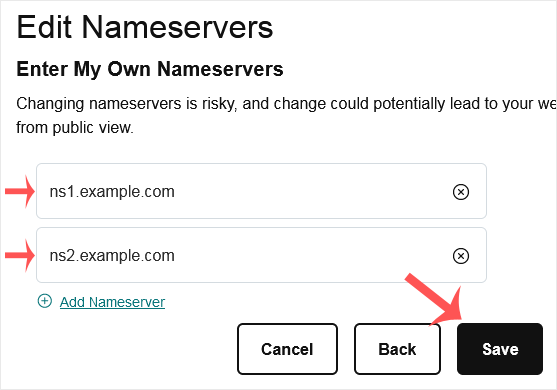 5. Scroll down to the end of the page and click on Enter my own nameservers (advanced).
