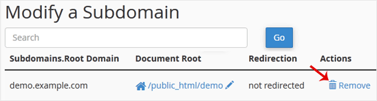 5. For confirmation, click on Delete Subdomain to remove your subdomain permanently.