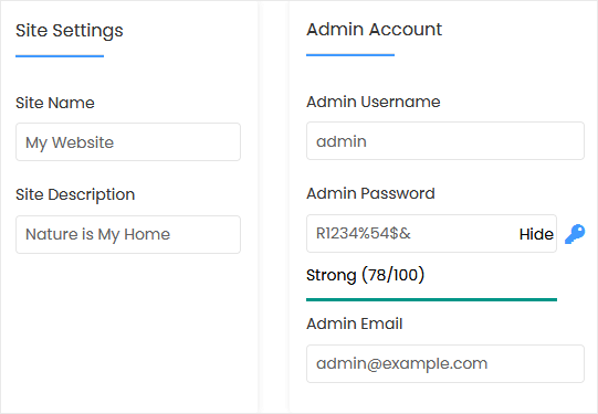 • Admin Email: Your email address. It is helpful for admin account password reset, notification, etc.