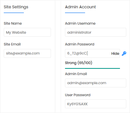 • Admin Username: Your new PHP-Fusion username (for security reasons, do not use the administrator or the admin username).