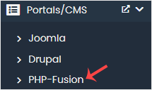 4. On the left side, locate the Portal/CMS category. Click on it and then on the PHP-Fusion link that appears.