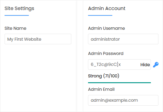 • Admin Email: Your email address. It is helpful for admin account password reset, notification, etc.