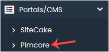 4. On the left side, locate the Portal/CMS category. Click on it and then on the Pimcore link that appears.